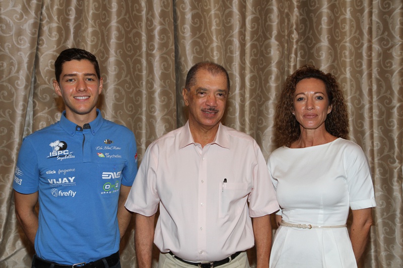 13 October 2014 | President James Michel received Seychellois professional triathlete, Nick Baldwin, at State House. Nick was accompanied by his mother, Mrs Jenny Baldwin.