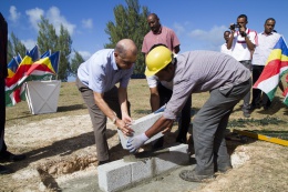 21 August 2014 | President James Michel laid the first brick for the construction of the beach soccer stadium at Roche Caiman
