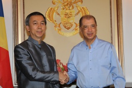 06 October 2015 | The new ambassador of the Kingdom of Thailand to Seychelles, Mr. Prasittiporn Wetprasit, presented his credentials to President James Michel at State House.