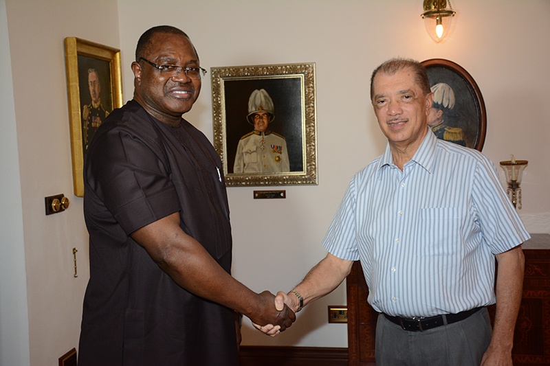 15 September 2015 | The outgoing Nigerian High Commissioner to Seychelles, H.E. Mr. Solomon Akintola Oyateru paid a farewell call on President James Michel at State House, following a tenure of 3 years