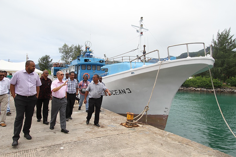 25 September 2015 | President James Michel visited three fishing vessels, moored in the Port of Victoria, which are part of the first fully Seychellois-owned industrial longliner fleet, costing a total 35 million Seychelles rupees.