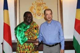 08 September 2015 | The High Commissioner of Ghana to Seychelles, Mr. Kwesi Ahwoi presented his credentials to President James Michel at State House.