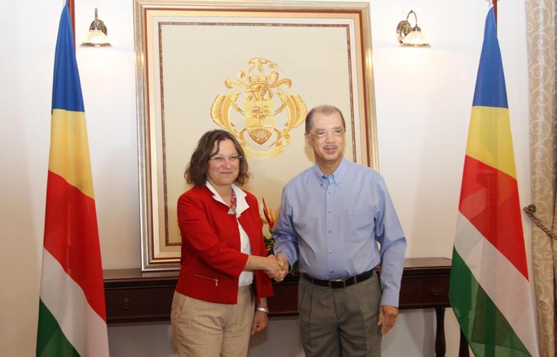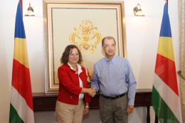 04 August 2015 | The British High Commissioner to Seychelles, H.E. Mrs. Lindsay Skoll paid a farewell call on President James Michel at State House