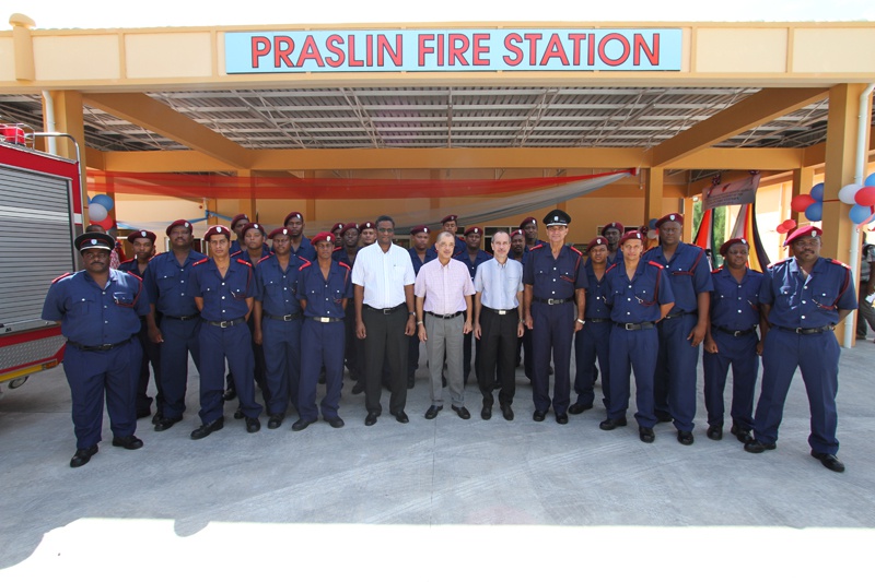 25 July 2015 | President Michel in a souvenir photo after he officially opened the Fire Station on Eve island, Praslin