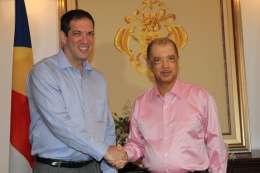 20 July 2015 | President James Michel congratulated Mr. Ronald Cafrine on his appointment to the post of Adviser to the Executive Director at the International Monetary Fund for the Asia-Pacific constituency, Mr. Barry Sterland